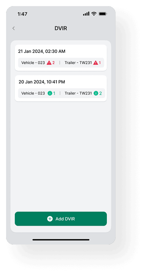 Tap on DVIR to review and to confirm the issues have been resolved.